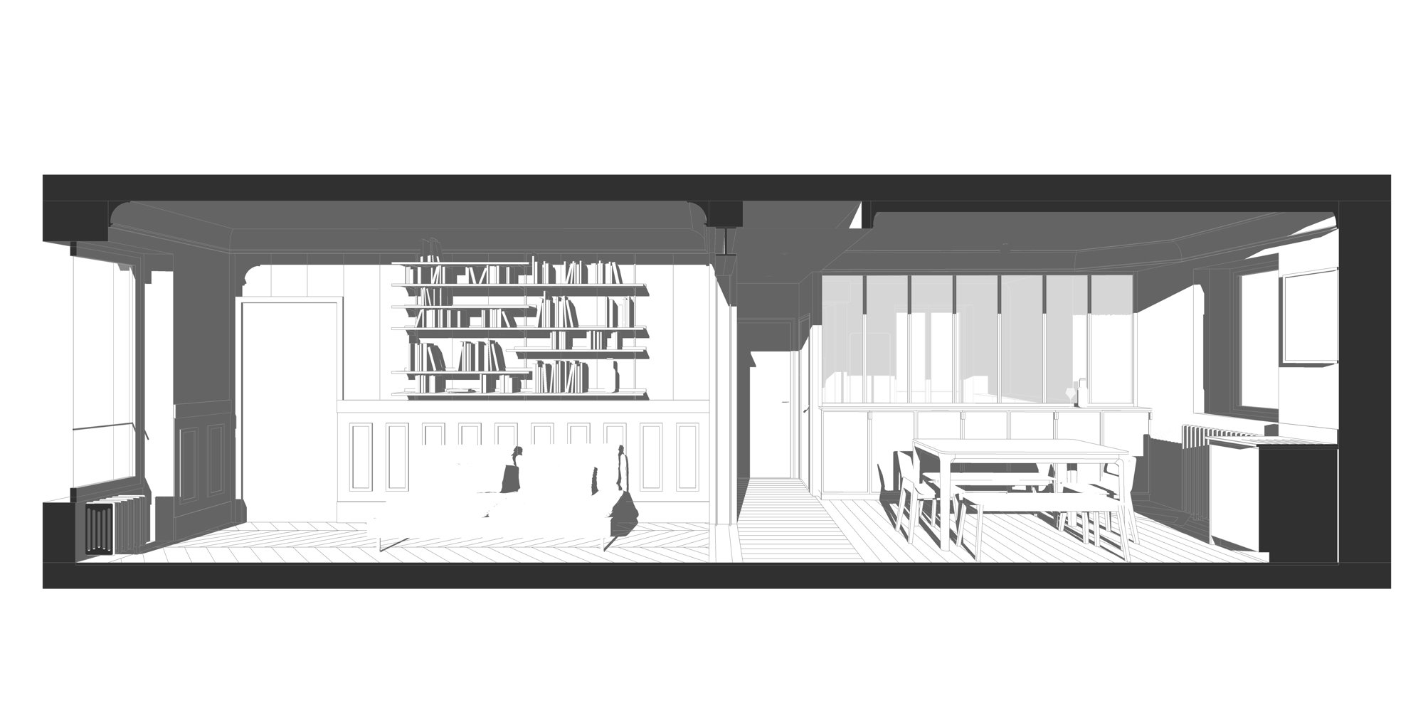 Breaking with Haussmann Complete renovation of a Haussmann apartment Paris, 2021 Design through Construction Administration residentialfurniture designfurnituredemolitiondecorationsteelinterior designarchitectural heritagerenovation