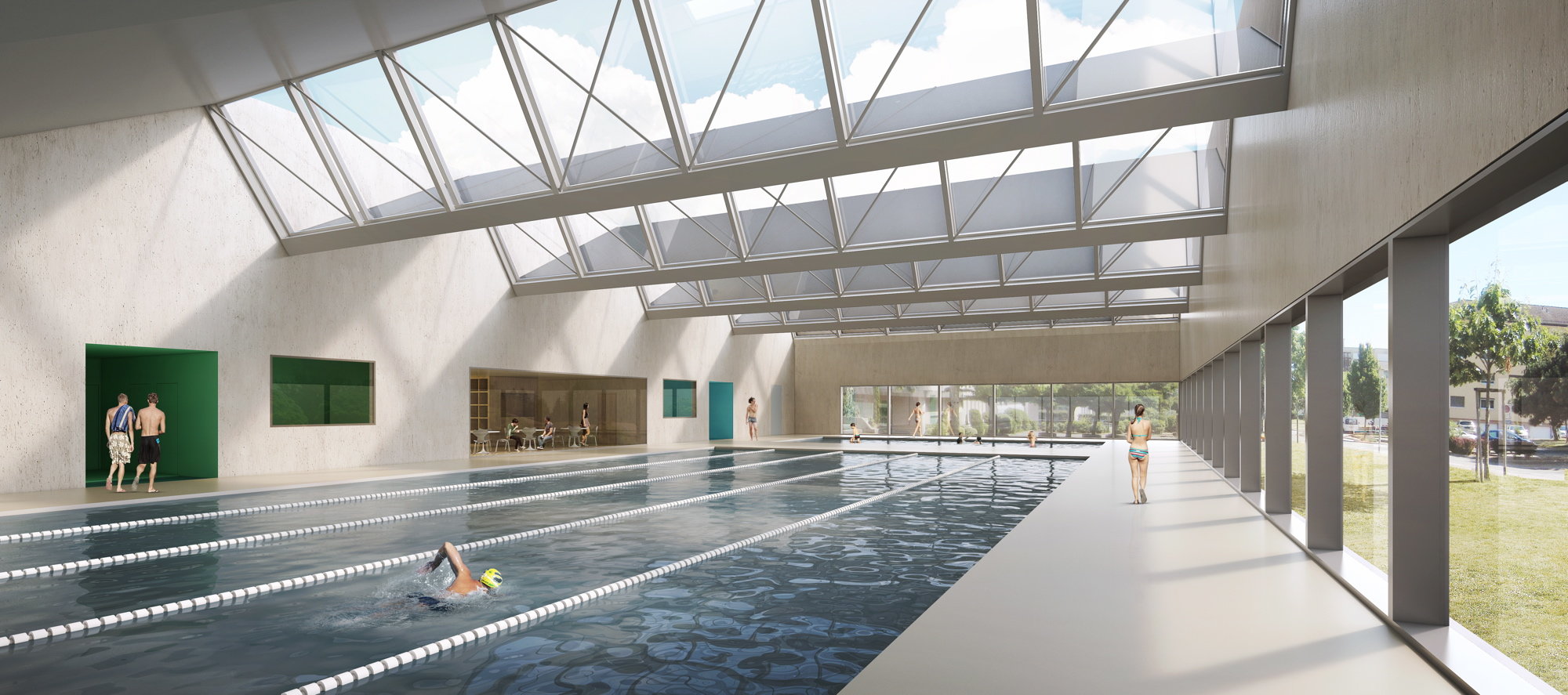 Backstroke swimming Indoor swimming pool Saint-Prex (Switzerland), 2015 Competition with J. Potignat et T. Sponti swimming poolstructure and lightcrossing structureSwitzerland