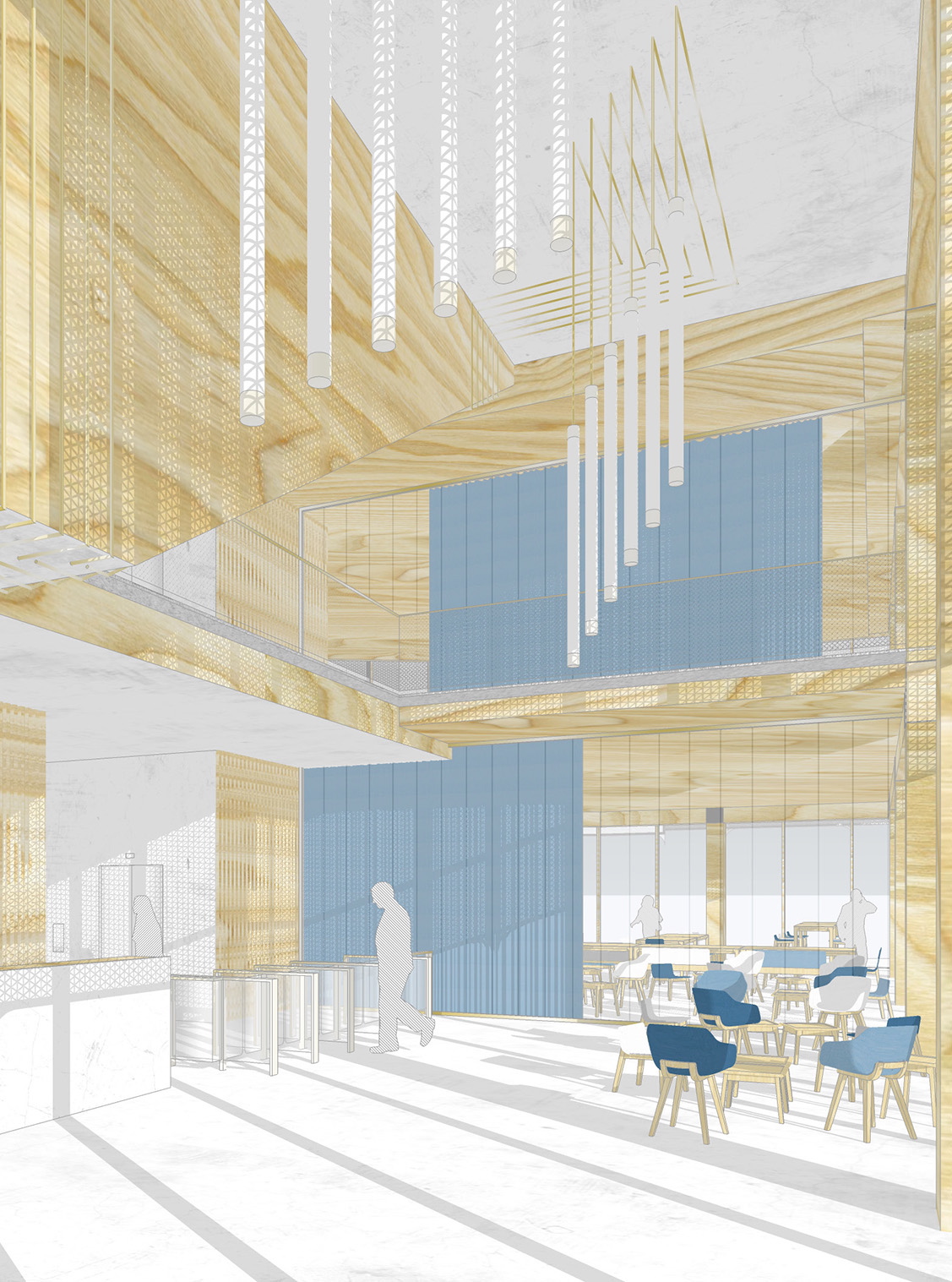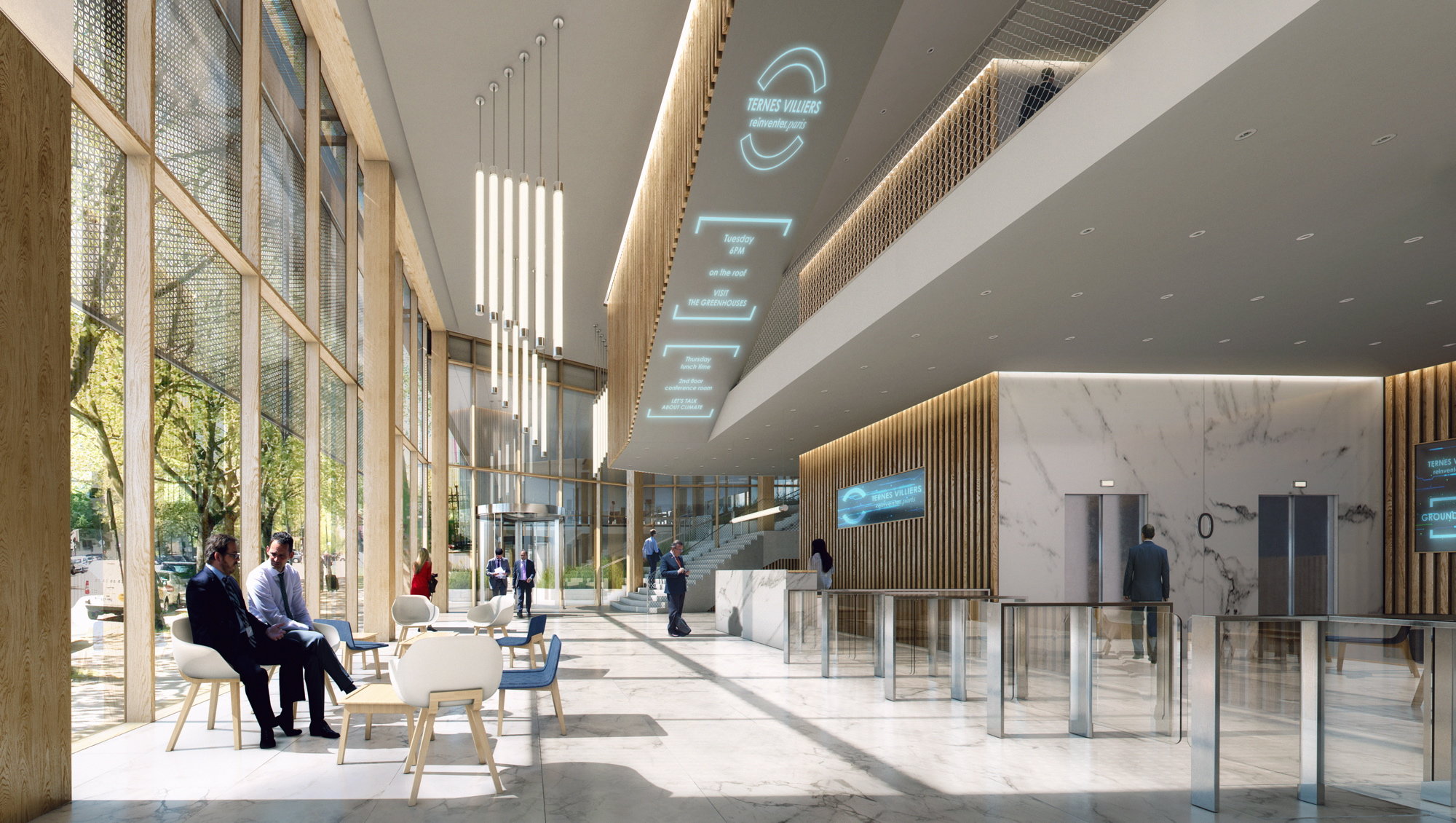 Marble and wood Ternes-Villiers Paris, 2016-22 Jacques Ferrier Architecture | BNP Paribas Real Estate Preliminary Interior Design furniture designlobbyworking spacesloggiascafeteriamarblewoodfurnitureinterior design