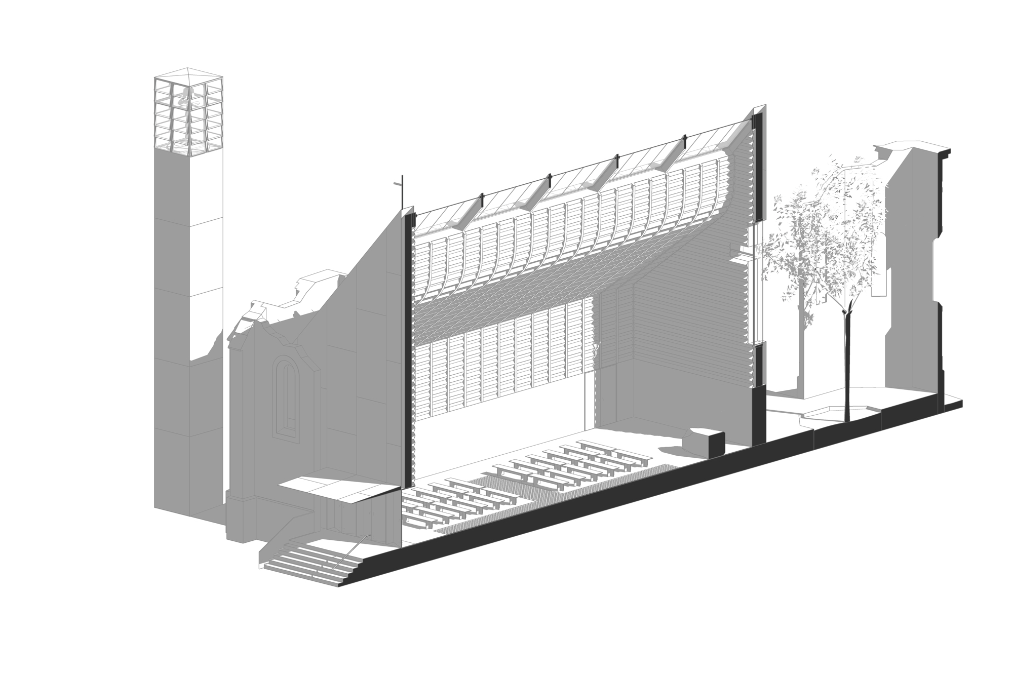 wooden structuredemolitionarchitectural heritagestructure and lightrenovationfacadesskylineurban renovationResiliency Projectchurchbell tower