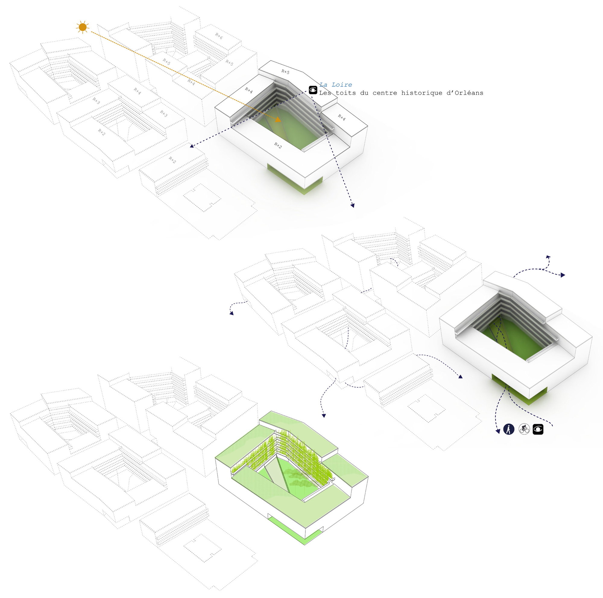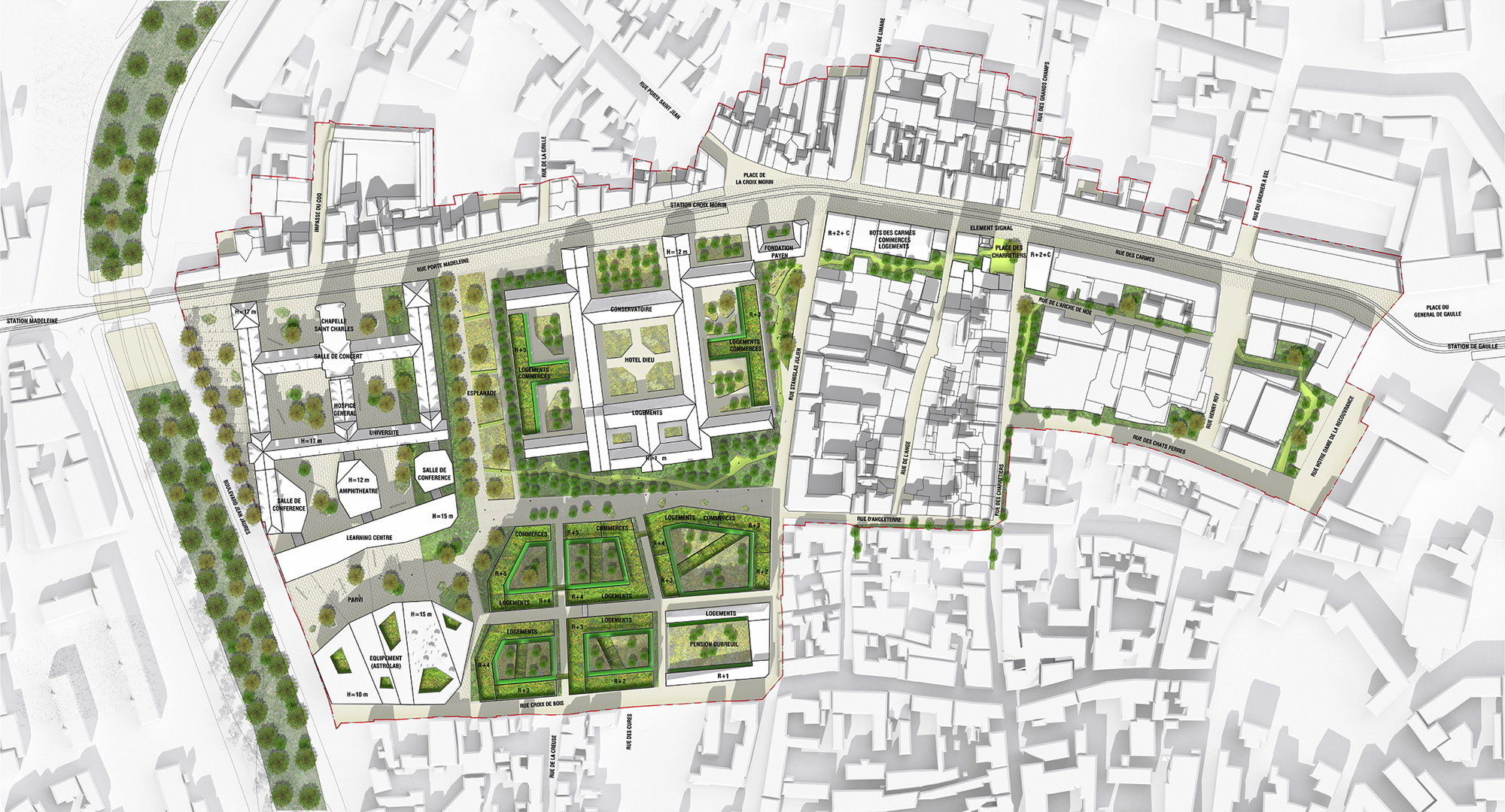 Hôpital Carmes Madeleine Rénovation urbaine Orléans, 2012-15 Jacques Ferrier Architecture et D’ici là (paysage) Concours et Plan guide forte densitépatrimoinerénovation urbainecentre historiqueconcertationCoteaux de la Loire